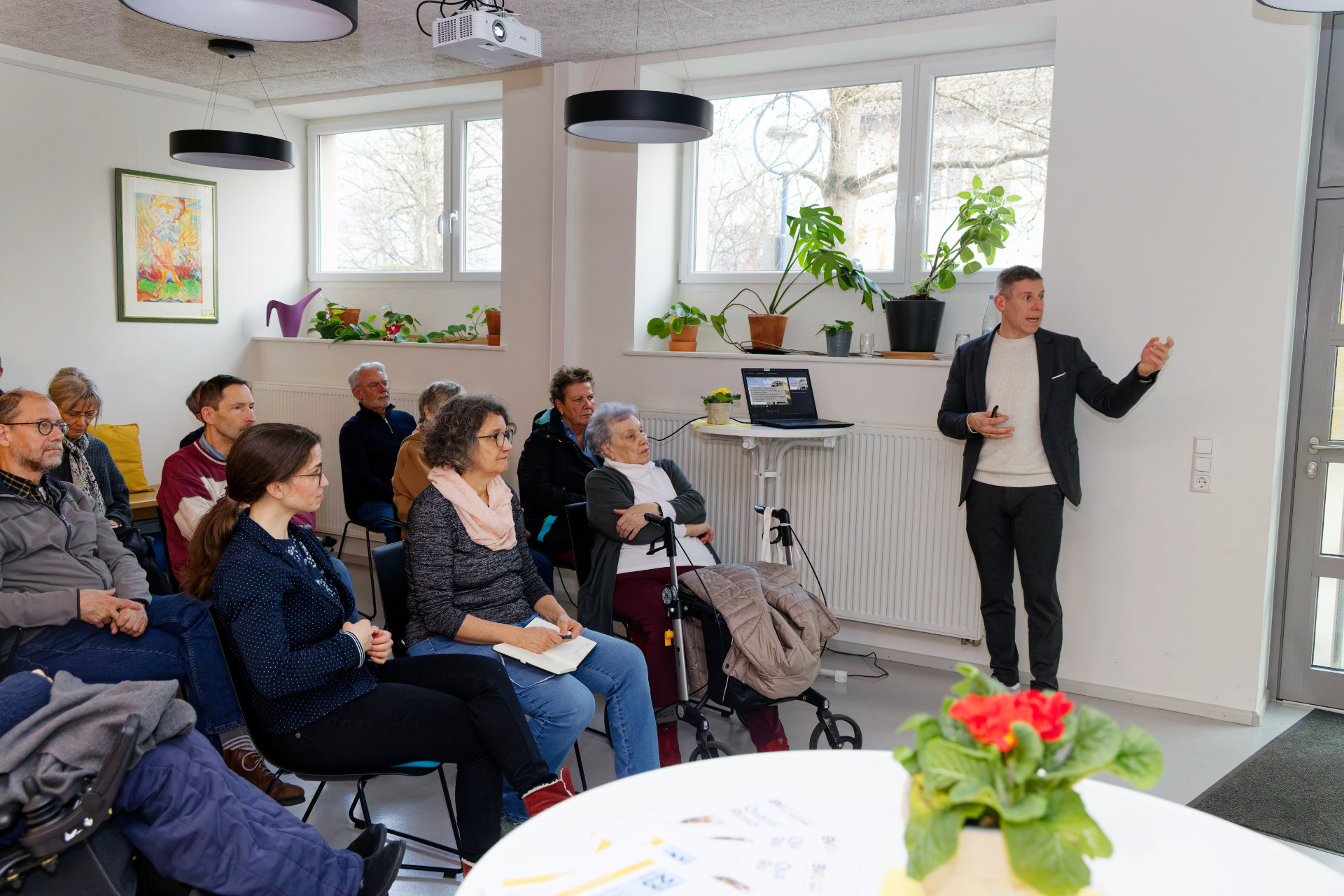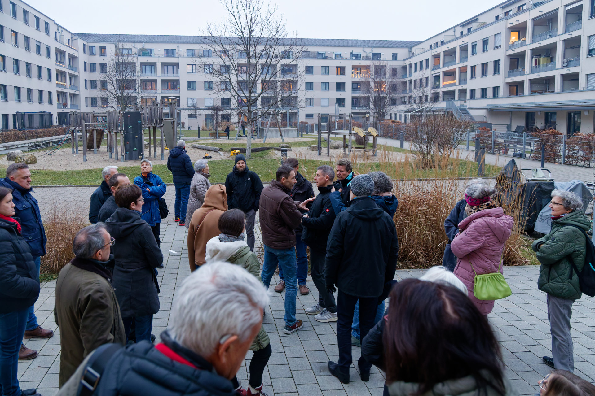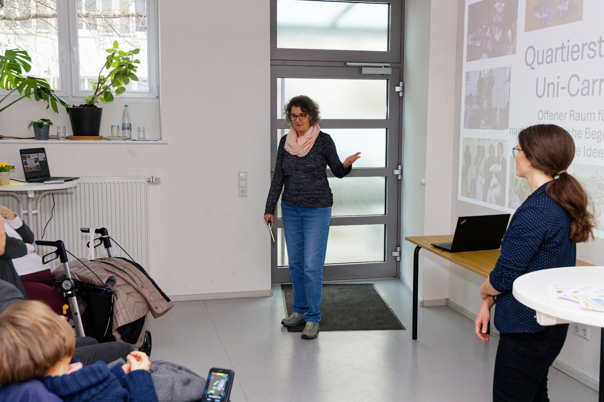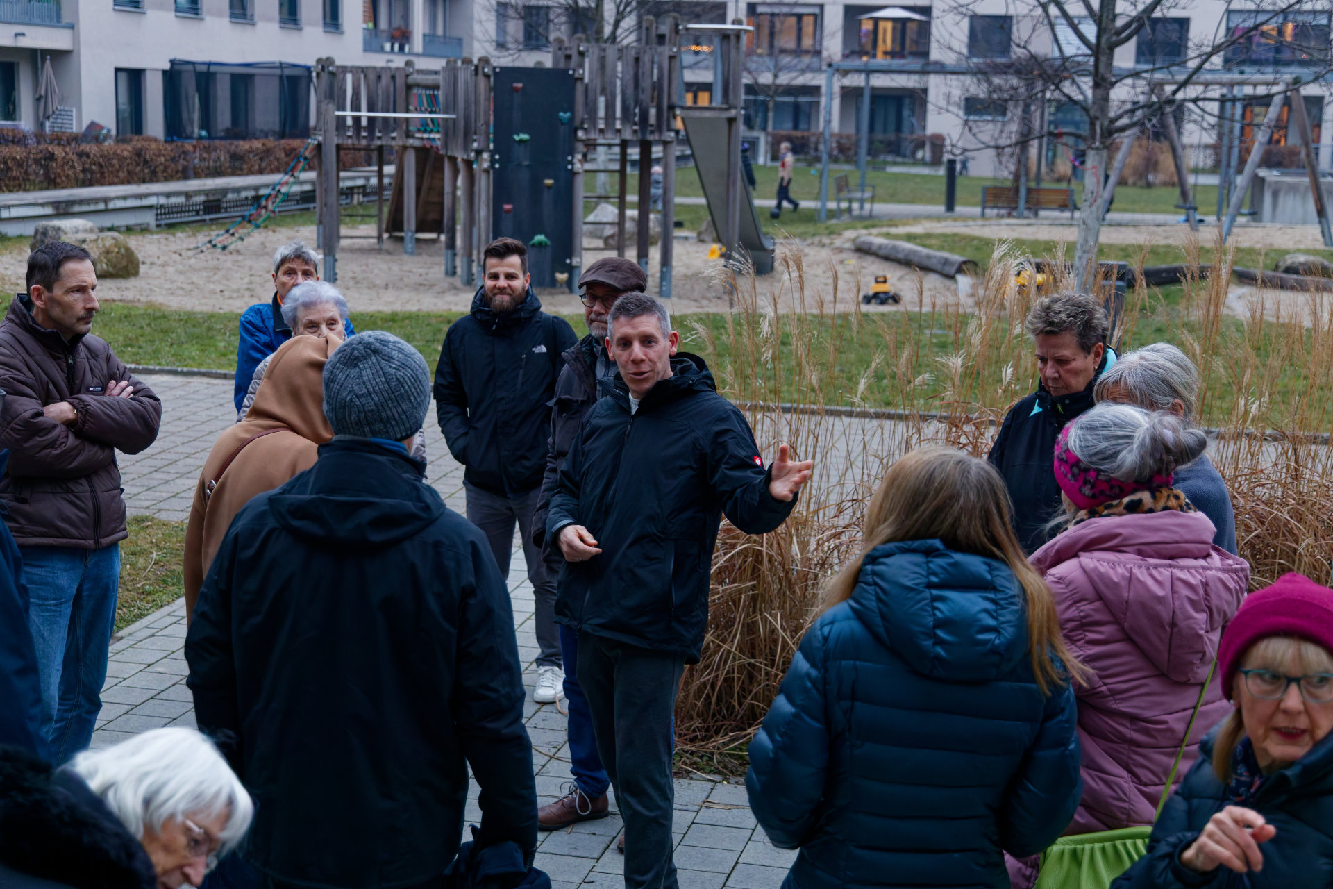 Am 23. Januar hatten Baugenossenschaft und Quartiersverein zum "Quartiersrundgang" ins Uni-Carré eingeladen. Quartiersvertreterin Doris Banzhaf und Mitarbeiterin Elisa Dold stellten die Arbeit des Quartierstreffs vor, Genossenschaftsvorstand Marc Ullrich sprach über den Mehrwert genossenschaftlichen Wohnens und führte kenntnisreich durch die Wohnanlage. Im Anschluss wurde der Austausch fortgeführt: bei Essen (besten Dank an die Bäckerei Reiß Beck für die freundliche Unterstützung) und Getränken fand die Veranstaltung einen geselligen Ausklang (Fotos: Stephan Seyl).