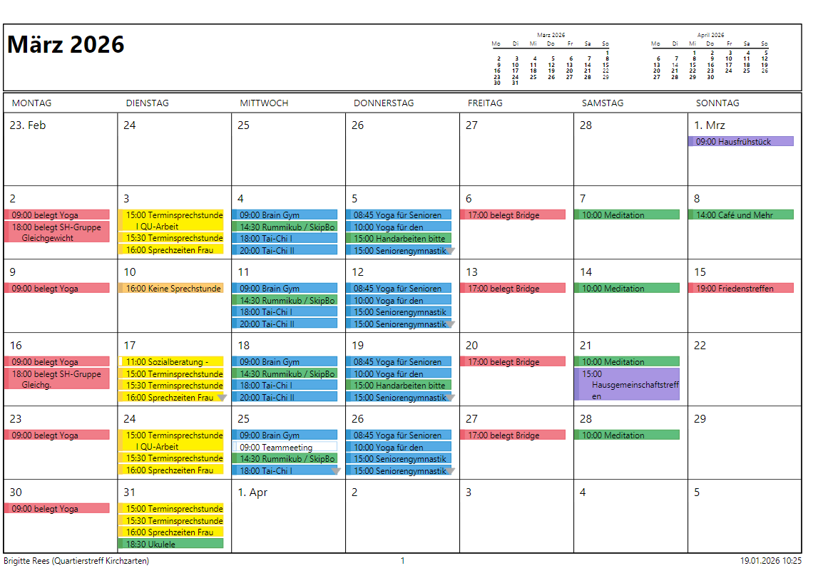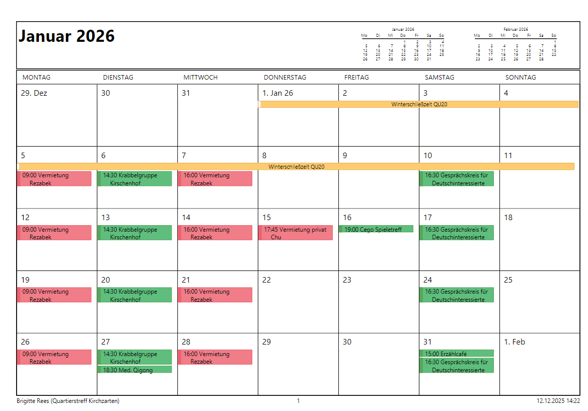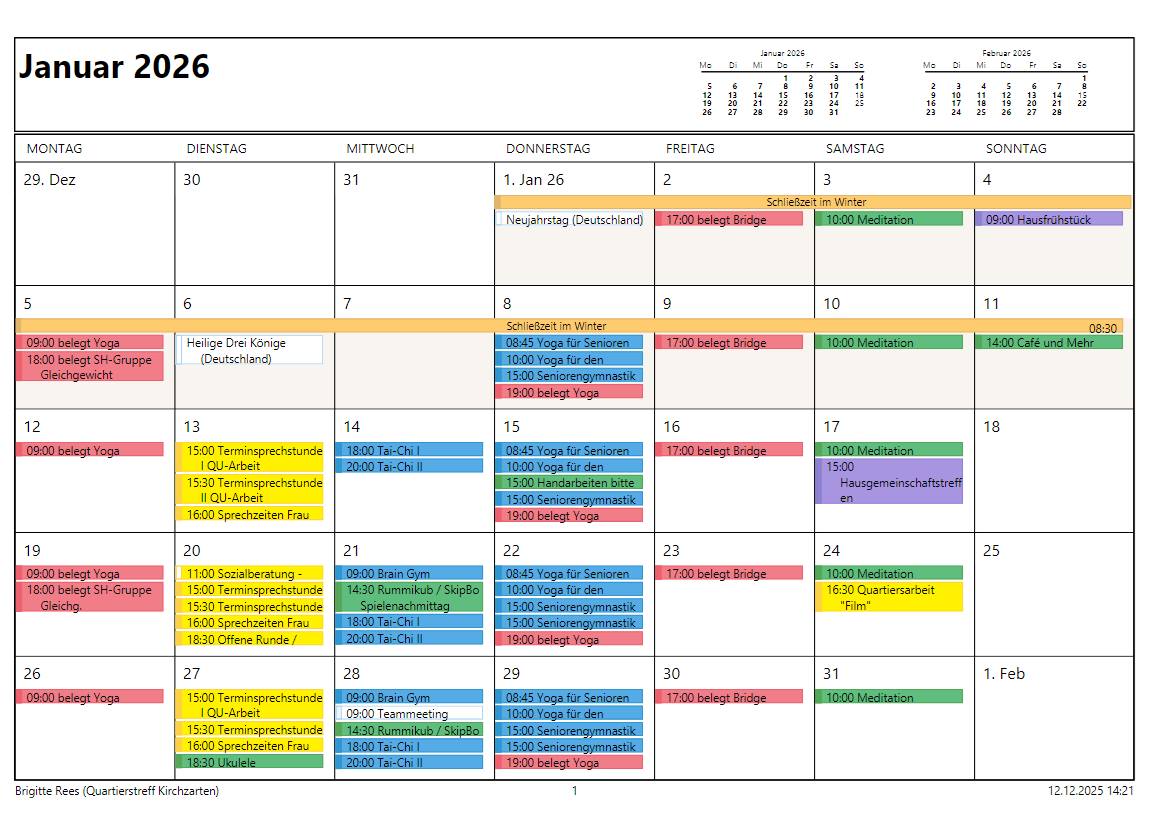 Der Quartierstreff 20 in Kirchzarten wurde ebenfalls 2011 als Haus der Generationen eröffnet. Mit 28 Wohnungen erstellte der Bauverein ein Mehrgenerationenhaus, dessen Gemeinschaftsräume anfangs durch 5 Ehrenamtliche Hausbewohner betreut wurden. Schnell entwickelte sich ein Zusammenleben mit vielerlei Aktivitäten. Da die Veranstaltungszahl und die Aktivitäten zunahmen, entschloss sich der Quartierstreff eine feste Mitarbeiterin einzustellen. Unter neuer Leitung entwickelte sich der Quartierstreff sehr gut.