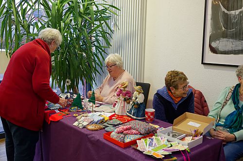 Am Wochenende vor dem 1. Advent fand im Qu46 in Zähringen wieder der Adventsmarkt statt. Während draußen klirrende Kälte herrschte, war es drinnen warm und bestens versorgt mir köstlichem Kuchen und wärmenden Getränken konnten an mehreren Verkaufstischen gestrickte, genähte und gebastelte Geschenke erstanden werden.