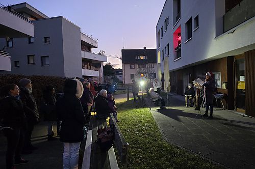 Am 17. Dezember gastierte der "Lebendige Adventskalender" im Quartierstreff in der Schwarzwaldstraße 1. Etliche Denzlinger hatten sich aufgemacht, um ein kleines Weihnachtsstück, aufgeführt von Ehrenamtlichen des Quartierstreffs, anzusehen und sich im Anschluss im Quartierstreff bei Punsch und Gesprächen aufzuwärmen (Fotos: Manuela Wucherer).