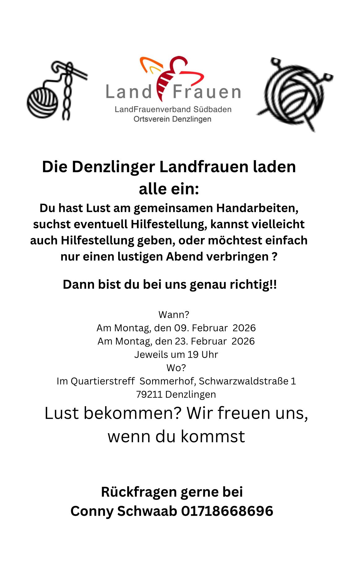 Die Denzlinger Landfrauen bieten an: Stricken und Häkeln