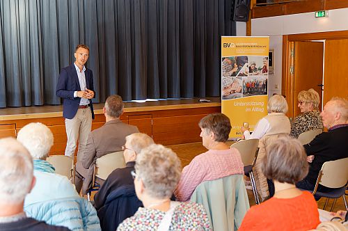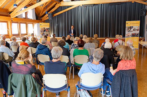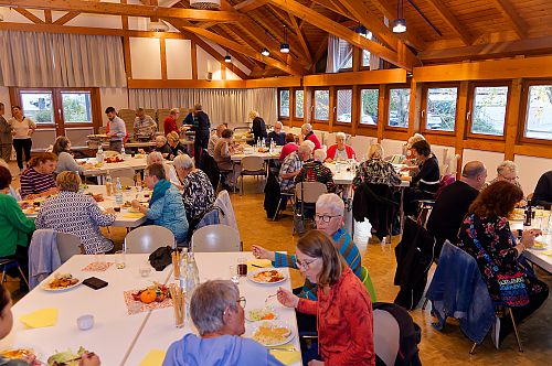 Der Ehrenamts-Event für die Aktiven des Quartiersvereins fand 2025 in Gundelfingen statt. Auch in diesem Jahr wanderte eine kleine Gruppe bei herrlichem Herbstwetter zum Veranstaltungsort. Nach Begrüßung durch den Vorsitzenden Marc Ullrich und dem Grußwort des Bürgermeisters Raphael Walz im Kultur- und Vereinshaus konnten sich die rund 50 Teilnehmerinnen und Teilnehmer für eine der vier unterschiedlichen Exkursionen in Gundelfingen entscheiden: Der Verein Bürger für Bürger – Bürgertreff e.V. stellte seine Aktivitäten und Standorte vor oder das neue Mehrgenerationen-Wohnprojekt am Schobbach konnte besichtigt werden. Einen Blick in die Gundelfinger Geschichte wurde durch den Verein für Heimatgeschichte Gundelfingen und Wildtal e. V. möglich und der Kunstverein Gundelfingen e.V. präsentierte eine neue Ausstellung im Rathausfoyer. Im Anschluss kamen die Gruppen zu einem guten Essen und geselligem Austausch wieder im Kultur- und Vereinshaus Gundelfingen zusammen. Die alljährlich stattfindende Veranstaltung ist – wie der Vereinsvorsitzende Marc Ullrich betonte – Dank und Anerkennung für die ehrenamtliche Arbeit in den Quartierstreffs und der Nachbarschaftshilfe.