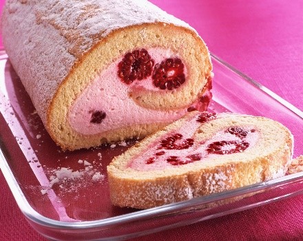 Bisquit-Rolle mit Himbeercreme