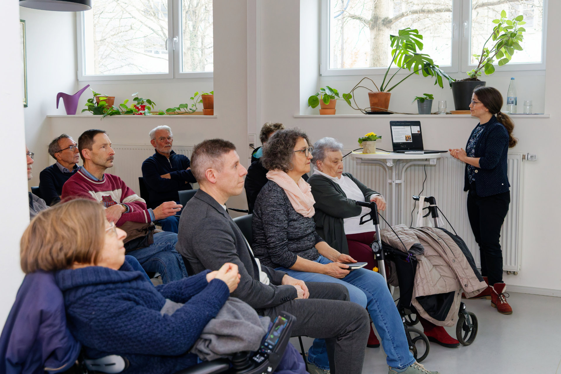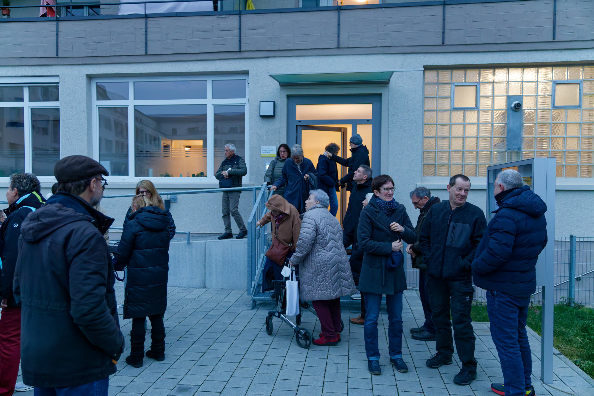 Am 23. Januar hatten Baugenossenschaft und Quartiersverein zum "Quartiersrundgang" ins Uni-Carré eingeladen. Quartiersvertreterin Doris Banzhaf und Mitarbeiterin Elisa Dold stellten die Arbeit des Quartierstreffs vor, Genossenschaftsvorstand Marc Ullrich sprach über den Mehrwert genossenschaftlichen Wohnens und führte kenntnisreich durch die Wohnanlage. Im Anschluss wurde der Austausch fortgeführt: bei Essen (besten Dank an die Bäckerei Reiß Beck für die freundliche Unterstützung) und Getränken fand die Veranstaltung einen geselligen Ausklang (Fotos: Stephan Seyl).